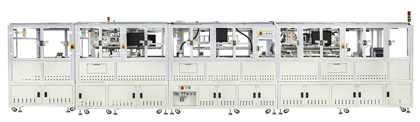 本设备基于智能作业的理念,与前后段设备载台连线,实现液晶模组自动 上料、自动涂银浆/面胶/背胶,银浆AOI,自动静置固化下料;