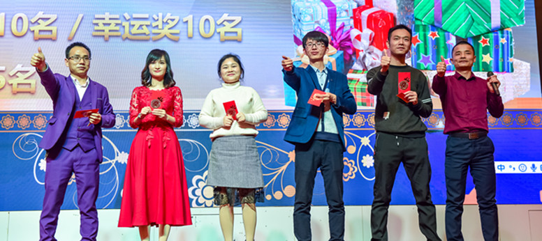 整个晚会最令人期待的莫属于抽奖环节了,从礼品到奖金,从公司设定的奖到意外惊喜奖,从300元的礼品到5500元的手机,惊喜不断,欢呼声不断